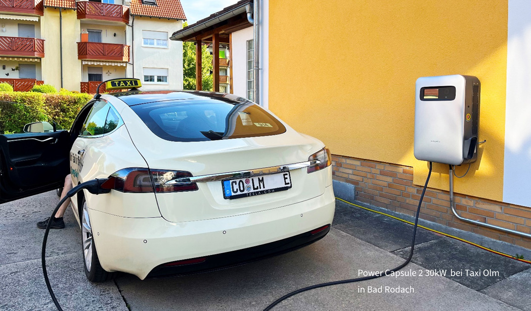 Die Taxifirma Taxi Olm aus Bad Rodach suchte nach einem schnellen DC-Ladegerät. Sie wollte ihre elektrische Taxiflotte möglichst schnell in den Pausen aufladen. Die Taxiflotte bestand aus einem Tesla Model S, einem EQV von Mercedes sowie einem eVito. Alle drei Fahrzeuge sind vollelektrisch.