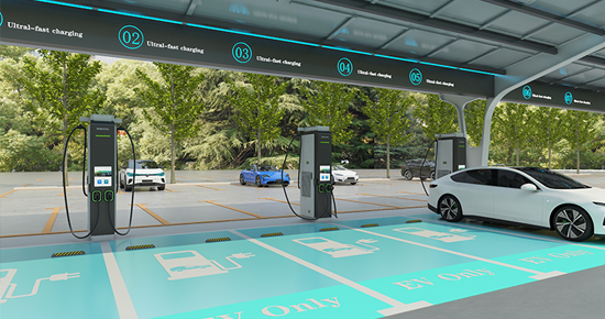 Die Ladestation ist ein Hochleistungs-DC-Ladestation. Sie unterstützt ein neues 20-kW-DC-Lademodul mit einer maximalen Ladeleistung von 480 kW. Das gesamte Ladesystem zeichnet sich durch hohe Effizienz und flexible Konfiguration aus. Durch die Steuerung des Benutzerterminals zum Laden von Elektrofahrzeugen ermöglicht es nicht nur eine gleichmäßige Lastverteilung, sondern auch die flexible Ausgangsverteilung zwischen mehreren Anschlüssen.