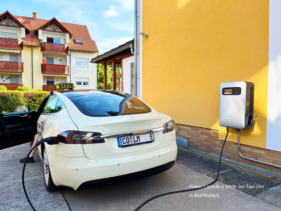 Eine Schnellladelösung, die 30 kW an die Taxiflotte aus Bad Rodach liefert