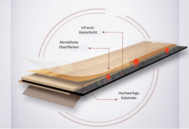 Die Wärmeabgabe erfolgt über Ferninfrarotstrahlung, die Oberflächen und Gegenstände im Raum direkt erwärmt, statt zunächst die Luft zu heizen. Dies sorgt für eine schnelle und nachhaltige Wärmeerzeugung sowie ein angenehm warmes Raumklima.