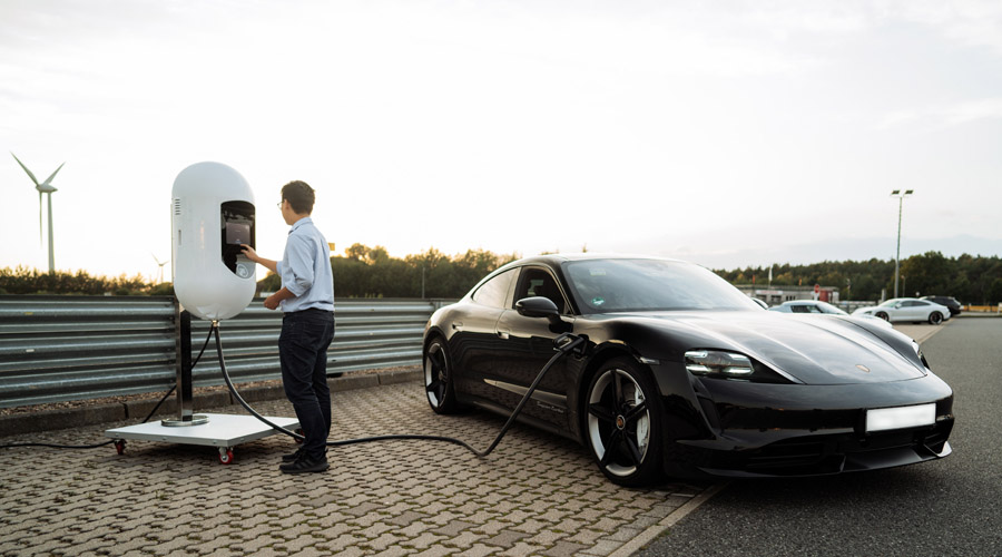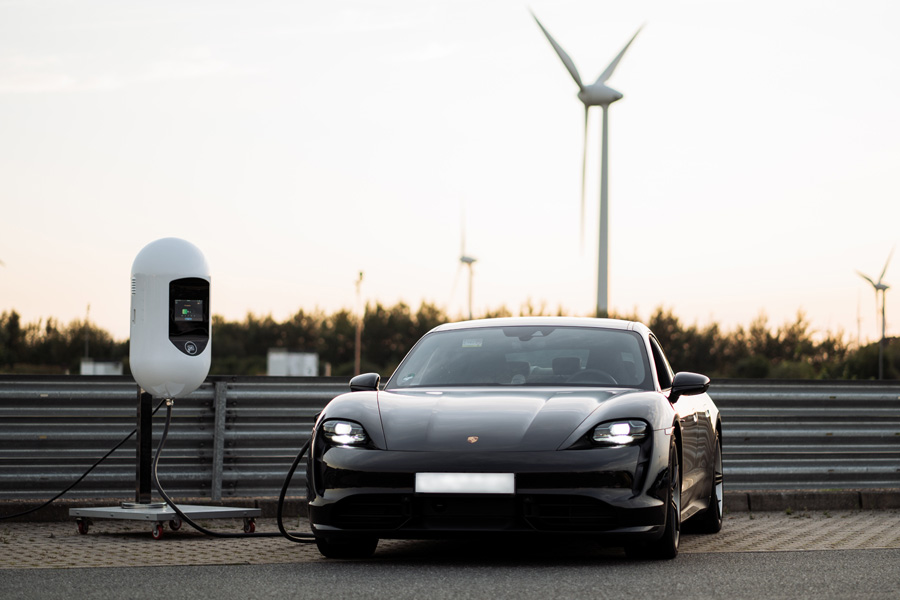 While the wind turbines are turning in the background and producing wind energy, enough range is recharged into the electric car via Power Caspule - this is how we imagine the future: the energy transition and the transport transition go hand in hand.