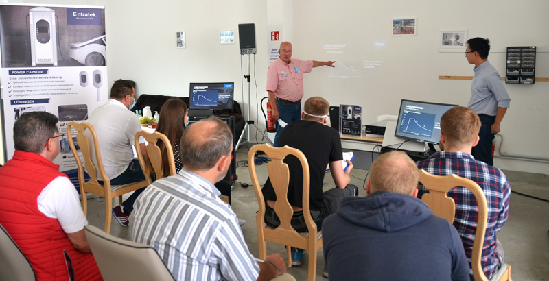 The partner training with the subsequent recharge event took place for the second time at the end of August on the Entratek premises in Norderstedt. In addition to technical product training, all ten participants were given the opportunity to operate the various AC and DC charging stations independently in a hands-on practical training course. The Entratek team was on hand to explain technical questions throughout the event. The day was rounded off by a final networking with snacks and drinks.